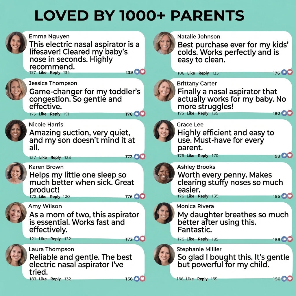 ⭐ Adjustable Suction Levels – Choose gentle or stronger suction depending on your baby’s congestion level.